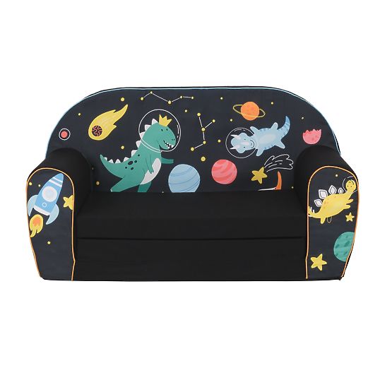 Buntes Kindersofa mit Dinosaurier-Motiv im Weltraum. .. mehr