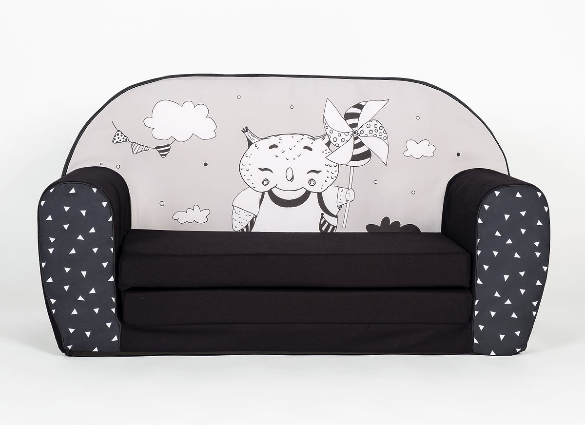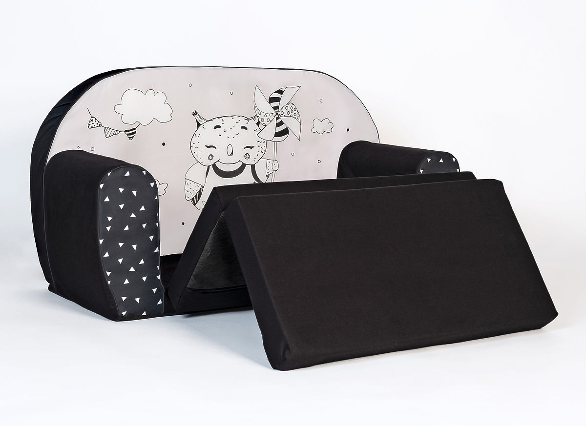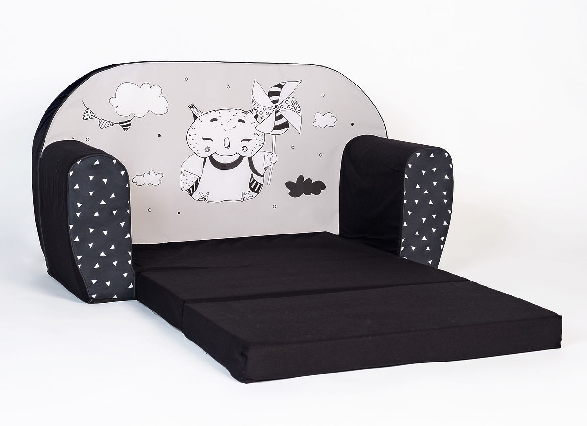 Das ausklappbare Kindersofa mit Eulenmotiv ist aus weichem und leichtem Schaumstoff gefertigt, sodass das Kind es leicht ohne Ihre Hilfe bewegen, ausklappen und zusammenklappen kann.