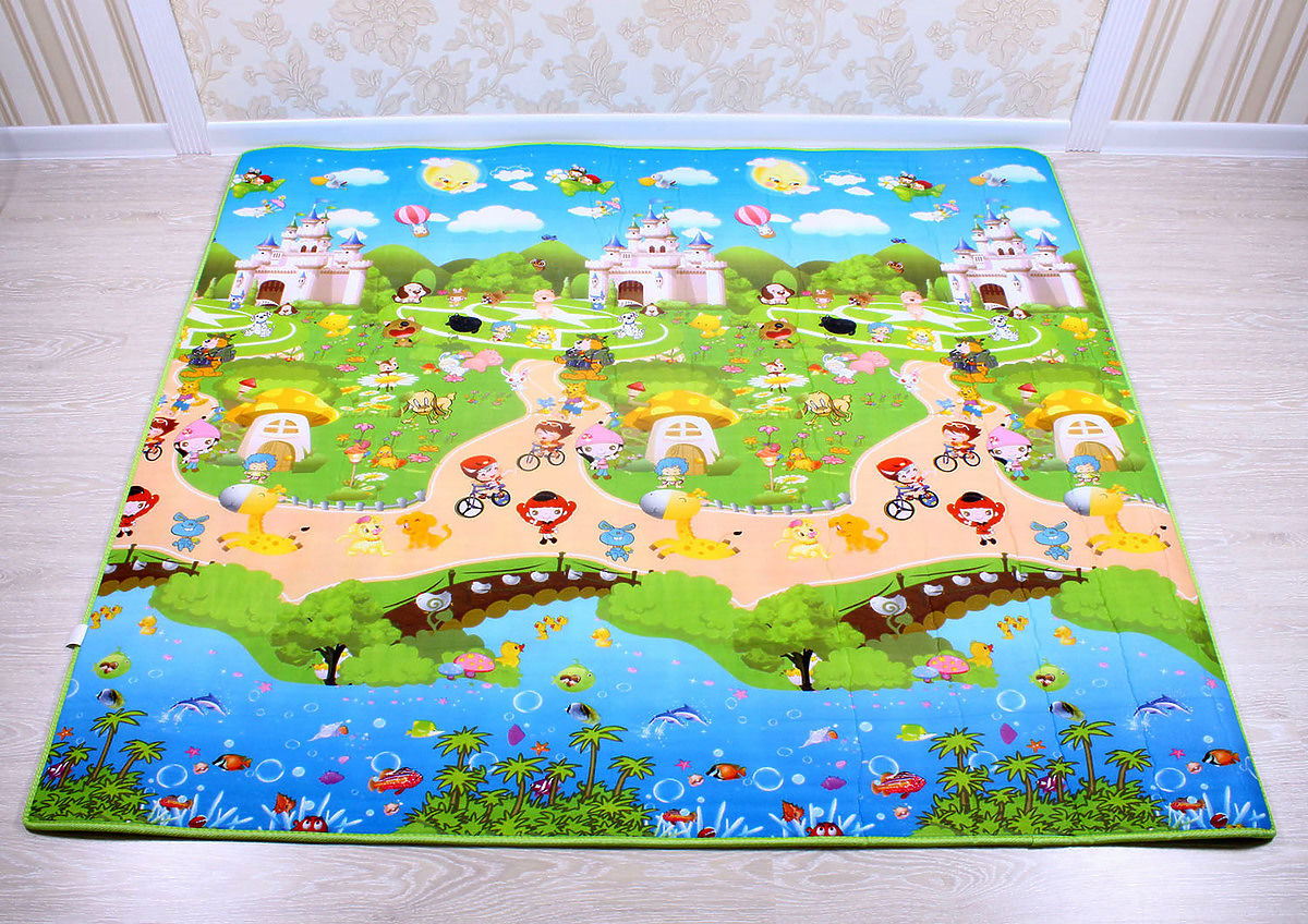 Schaumteppich hat hervorragende Dämmeigenschaften, vom Boden aus, damit Kinder nicht kalt sein. Es ist auch ideal im Falle eines Sturzes, den Schutz von Kindern und minimiert die Wahrscheinlichkeit von Verletzungen. Es ist resistent gegen Schmutz, einfach mit einem feuchten Tuch abwischen.
