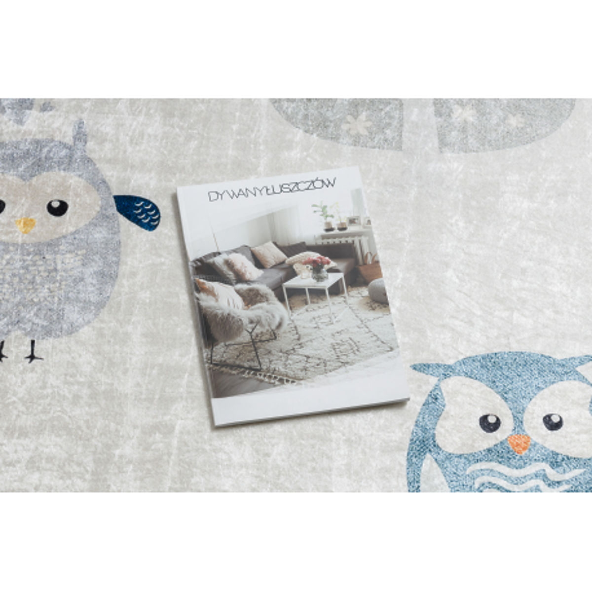 Rutschfester Kinderteppich mit Eulenmotiv in Grau. .. mehr