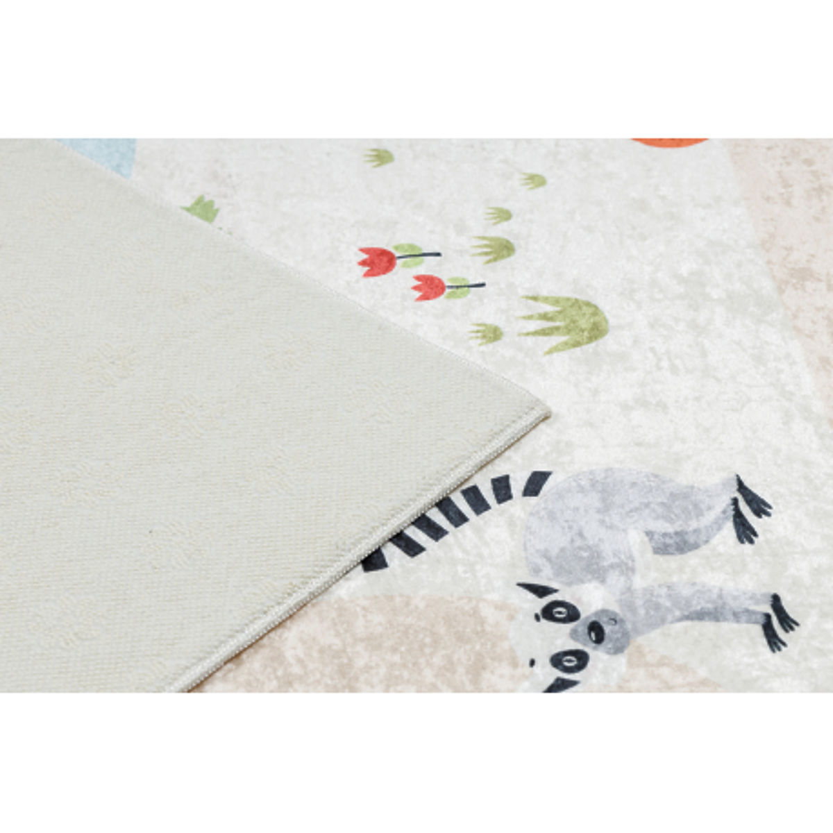 Rechteckiger Kinderteppich mit Zoo-Motiv, rutschfest und waschbar. .. mehr