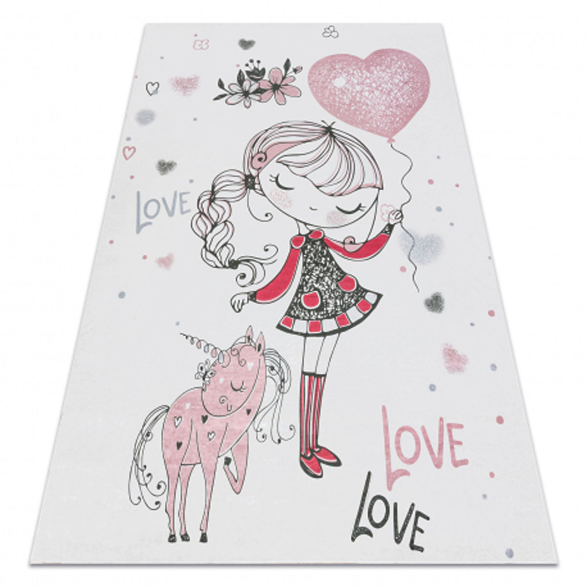 Banaby.de » Kindermöbel / Kinderteppiche / Kinderteppiche / BAMBINO 2644 Waschmatte Mädchen, Einhorn für Kinder rutschfest - weiß / rosa