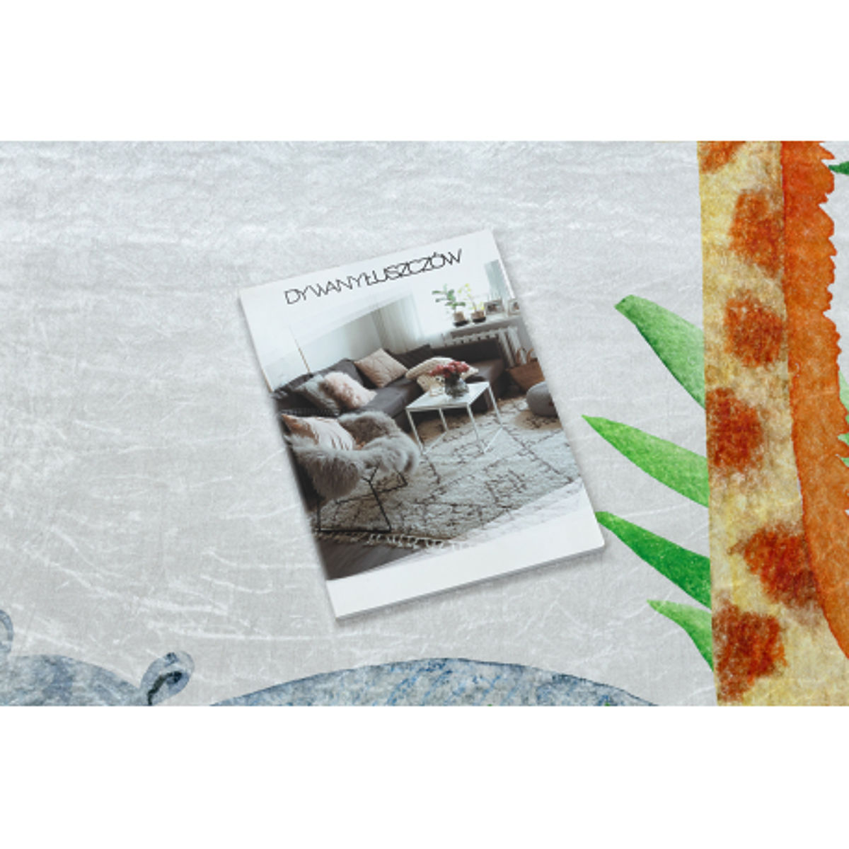 Schaffen Sie eine fröhliche und spielerische Atmosphäre im Kinderzimmer mit dem rechteckigen Waschmatte BAMBINO 54090 mit afrikanischen Tiermotiven. Die Kombination aus Weiß und Grün bringt ein freudiges und inspirierendes Element in den Raum, ideal zum Spielen, Entspannen und für kreative Aktivitäten. Der Teppich besteht aus 100% Polyester, das angenehm zu berühren, langlebig und pflegeleicht ist. Mit einer Dicke von 5 mm und einem Gewicht von 0,70 kg/m² ist er leicht, bequem und stabil auf dem Boden. Ein praktischer Vorteil ist die Waschmaschinenfestigkeit, die die Pflege erheblich erleichtert und den Teppich sauber und frisch hält. Die rutschfeste Beschichtung sorgt für Sicherheit beim Spielen und minimiert das Risiko des Ausrutschens.