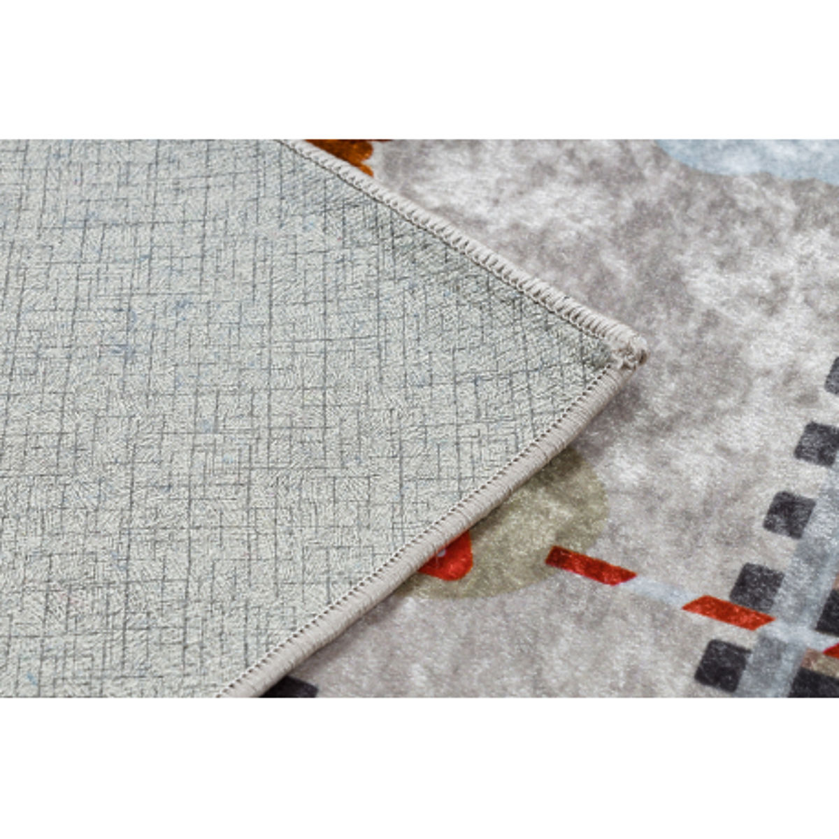 Der Teppich ist rutschfest und kann problemlos in der Waschmaschine gewaschen werden, was eine einfache Pflege und eine hygienische Umgebung gewährleistet. Dank des Polyester-Materials ist er zudem leicht abwaschbar und schmutzabweisend. Mit einer Dicke von etwa 5 mm bietet er Komfort und einfache Handhabung.