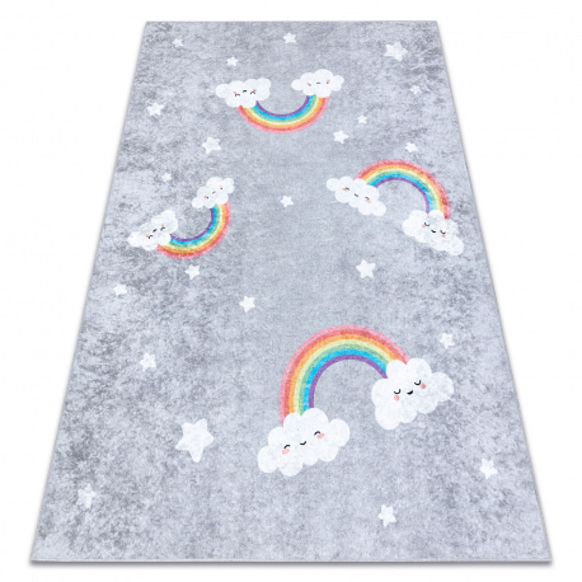 Banaby.de » Kindermöbel / Kinderteppiche / Kinderteppiche / JUNIOR 52063.801 Waschbarer Teppich Regenbogen, Wolken für Kinder rutschfest - grau