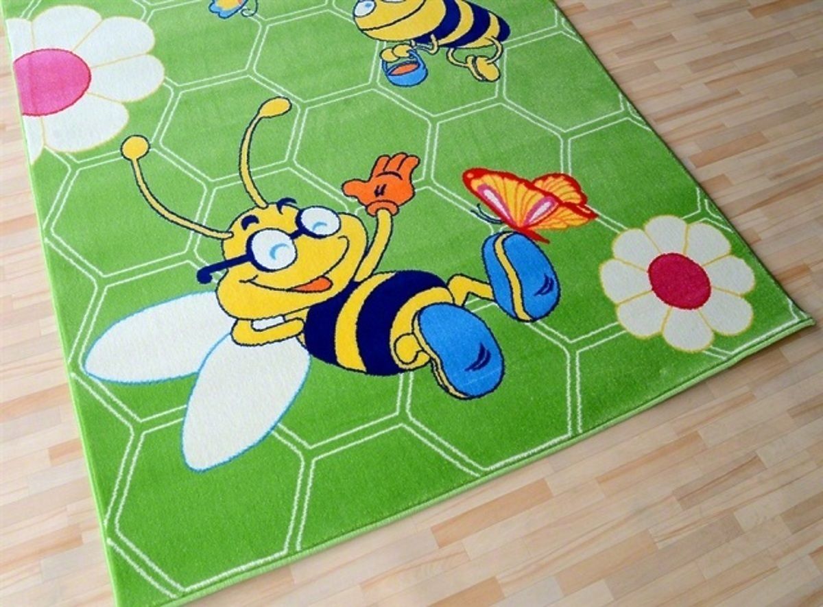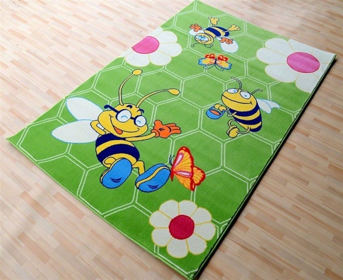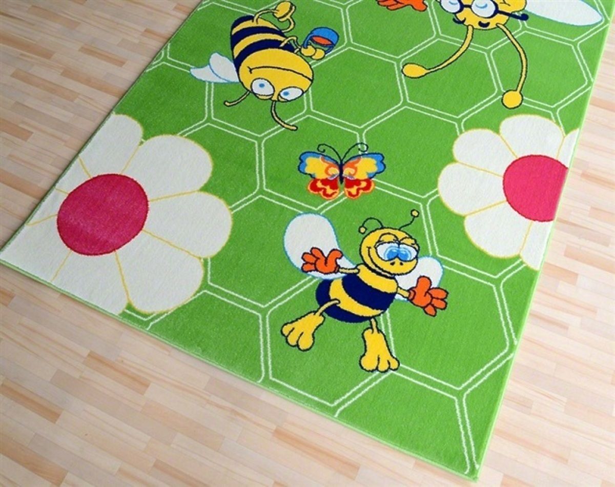 Thema Bienen sieht sehr bezaubernd, perfekt geeignet, um ein Mädchen und Jungen auf dem Zimmer. Frohe Bienen für ein Baby Teppich erhellen jeden möglichen Raum des Kindes und ergänzen es wunderschön. Grüne Kinderteppich ist in kräftigen Farben gehalten. Auf einem grünen Hintergrund gibt es Motive von Bienen, Blumen und Schmetterlinge. Es wird aus Garnen hergestellt. - Stapelhöhe: 1,2 cm - Gewicht Teppiche: 2100 g / m2