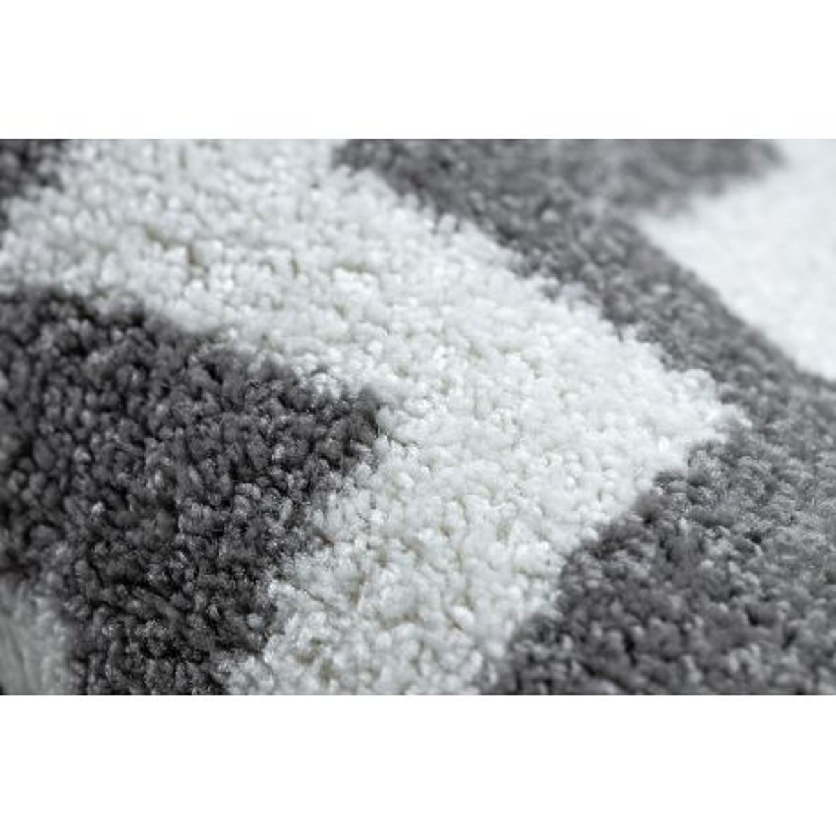 Moderner runder Teppich mit Zickzackmuster in grau-weiß. .. mehr