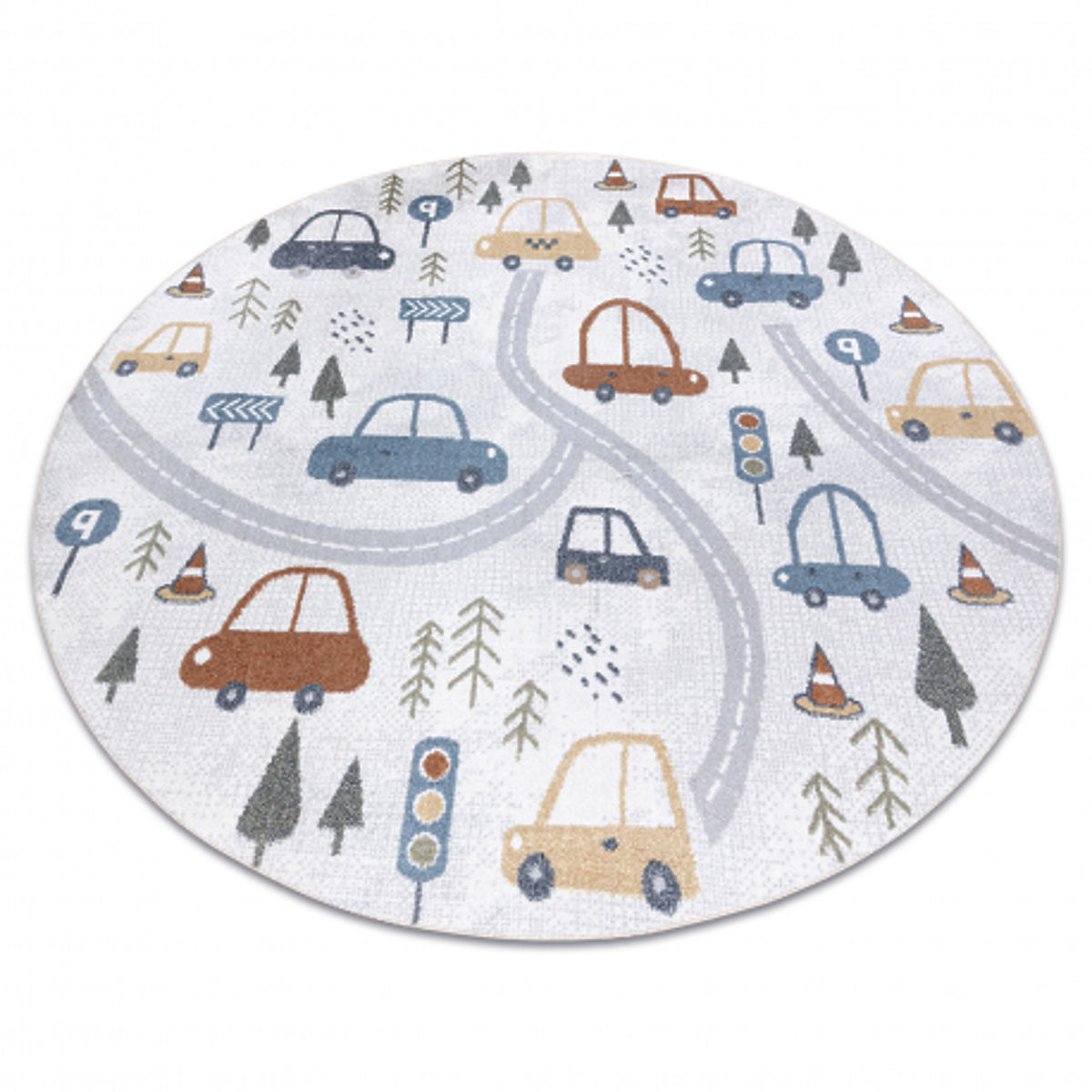 Banaby.de » Kindermöbel / Kinderteppiche / Kinderteppiche / Teppich BONO 8436 Rund Autos, Straßen creme / hellgrau