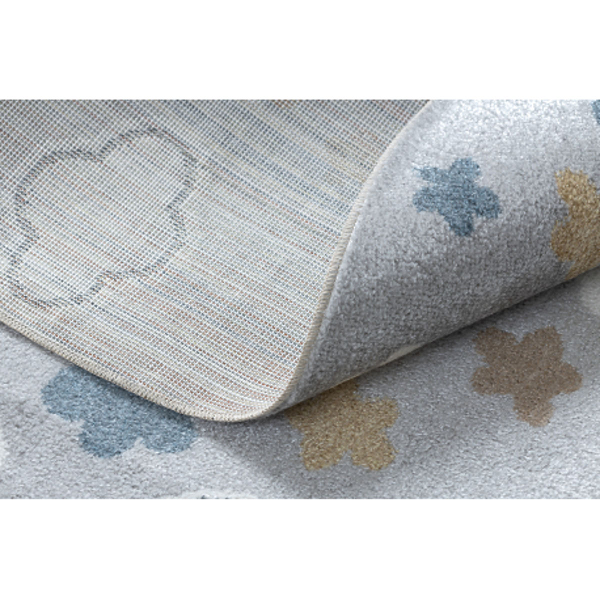 Der runde Teppich BONO 8437 Wolken und Himmel bringt Sanftheit, Leichtigkeit und Harmonie in den Innenraum. Die hellgraue Farbe in Kombination mit cremefarbenen Details wirkt sehr beruhigend und fügt sich leicht in moderne Räume ein, insbesondere in Kinderzimmer oder Entspannungszonen.
