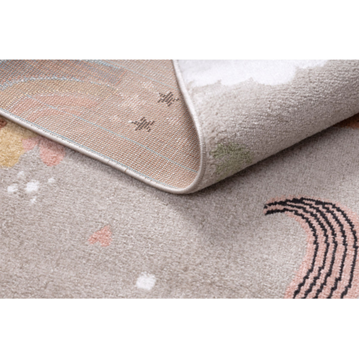 Verzaubern Sie das Kinderzimmer mit einer magischen Atmosphäre durch den Teppich FUN Sweety, der mit einem niedlichen Einhorn und einem bunten Regenbogen verziert ist. Die sanfte beige Farbe wirkt harmonisch und lässt sich leicht mit anderen Möbeln und Dekorationen kombinieren. Der Teppich ist weich, angenehm zu berühren und ideal zum Spielen, Ausruhen und für alltägliche Freuden. Dank des strapazierfähigen Materials eignet er sich hervorragend für das Kinderzimmer, Spielzimmer oder den Kindergarten.