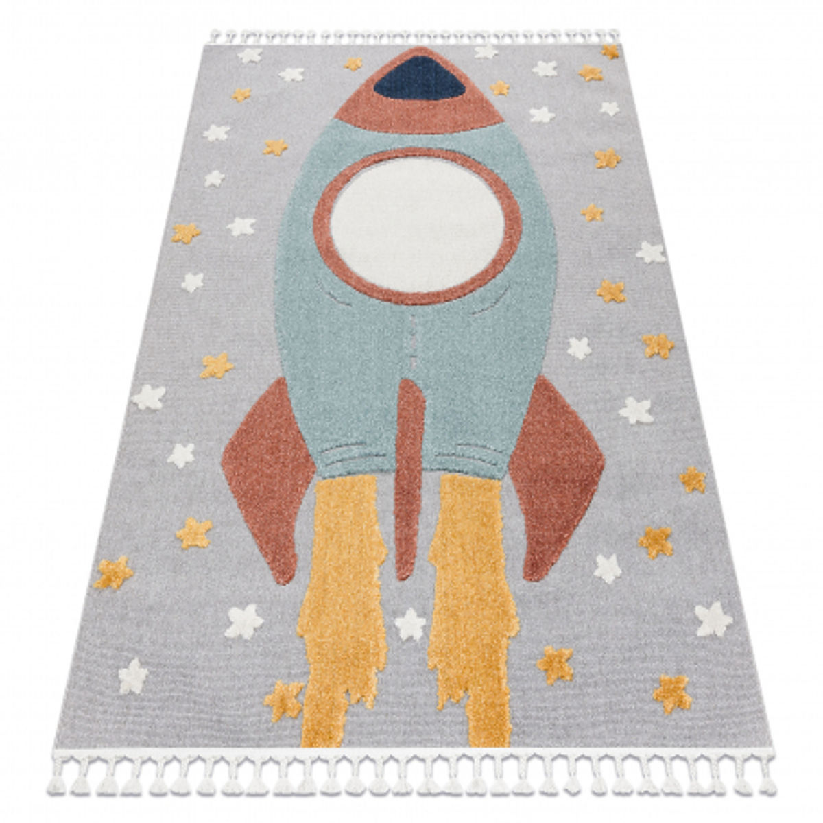 Banaby.de » Kindermöbel / Kinderteppiche / Kinderteppiche / Teppich YOYO GD55 grau / blau - Sterne, Rakete für Kinder, strukturell, sensorische Fransen