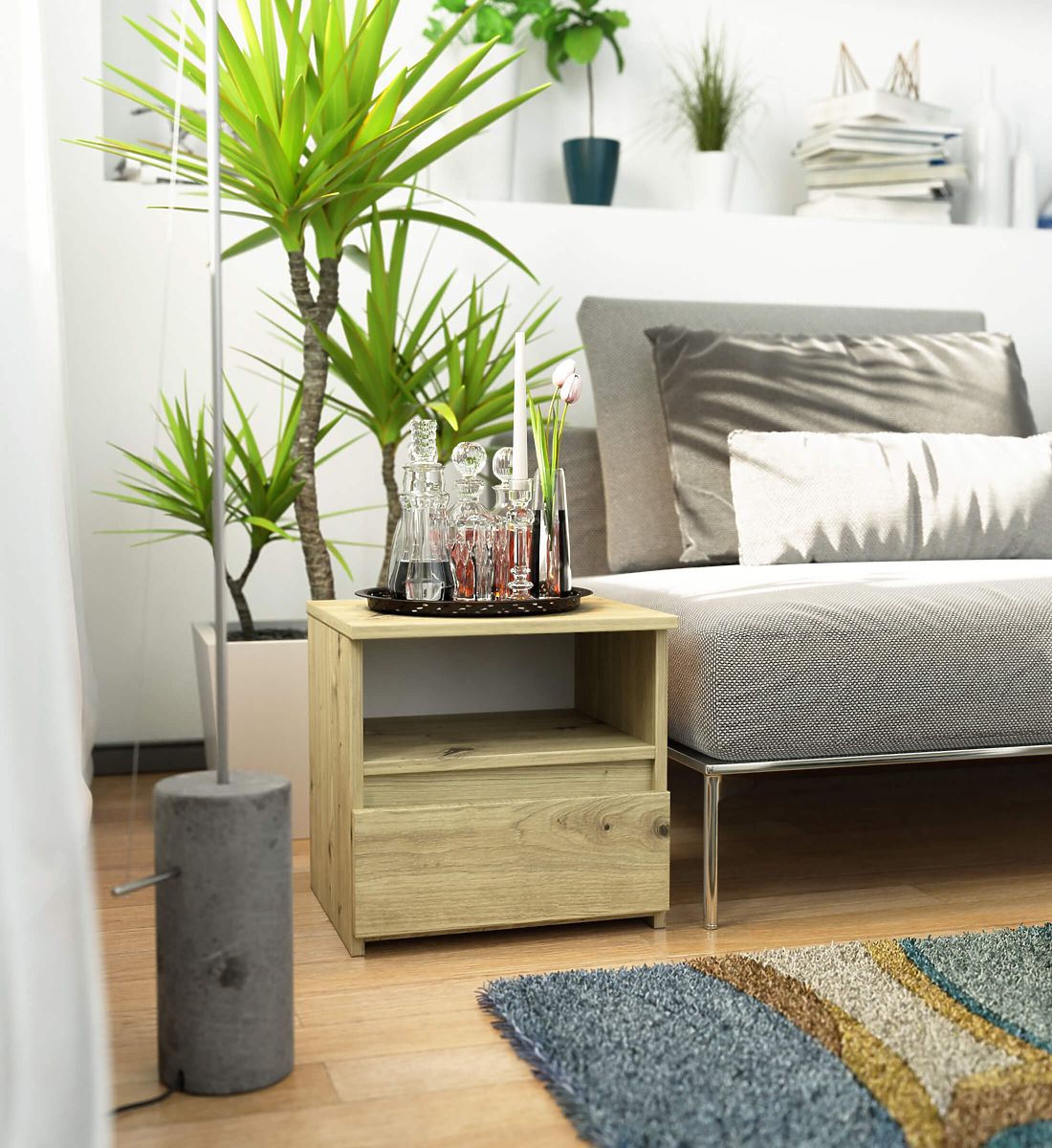 Nachtkommoden sind eine beliebte Art von Möbeln, die neben dem Bett platziert werden. Auf der Platte befindet sich meist eine Lampe, während im Inneren Gegenstände aufbewahrt werden, die Entspannung und Schlaf erleichtern. Personen, die nach einer eleganten Kommode suchen, sollten auf den Nachttisch CL1 40 cm in der Farbe Eiche Artisan achten. Er wird in jedem Schlafzimmer schön zur Geltung kommen. Er kann auch im Kinderzimmer platziert werden.