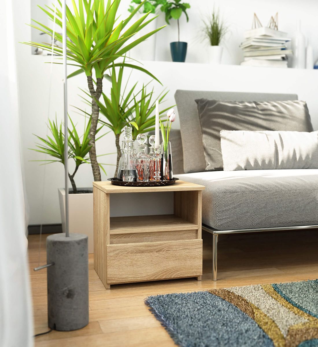 Nachtische sind eine beliebte Art von Möbeln, die neben dem Bett platziert werden. Auf der Platte befindet sich häufig eine Lampe, während im Inneren Gegenstände aufbewahrt werden, die Entspannung und Schlaf erleichtern. Personen, die eine elegante Kommode suchen, sollten auf den Nachttisch CL1 40 cm in der Farbe Eiche Sonoma achten. Er wird in jedem Schlafzimmer schön zur Geltung kommen. Er kann auch im Kinderzimmer platziert werden.