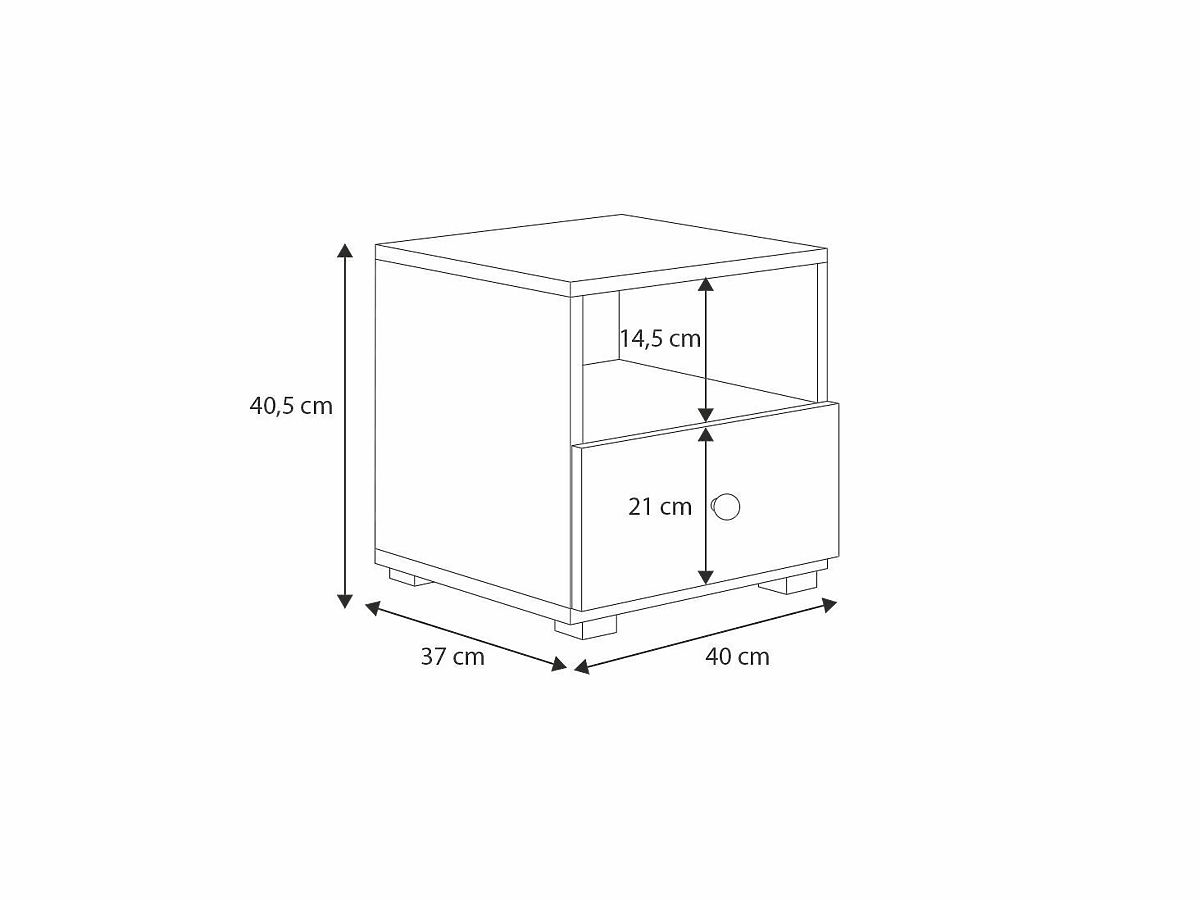 Der Nachttisch EMI wurde mit Blick auf Komfort und Funktionalität entworfen. Er ist mit einer praktischen Schublade ausgestattet, die die Aufbewahrung kleiner Gegenstände wie Bücher, Spielzeug oder Zubehör ermöglicht und so hilft, Ordnung zu halten. Die solide Konstruktion aus laminiertem Möbelbrett sorgt für Langlebigkeit und Widerstandsfähigkeit gegen den täglichen Gebrauch. Ein weiterer Vorteil ist die Möglichkeit, die Farbe des Griffs zu wählen, was die Anpassung des Tisches an den Stil des Zimmers ermöglicht und ein Element der Personalisierung bietet, das Kinder lieben.