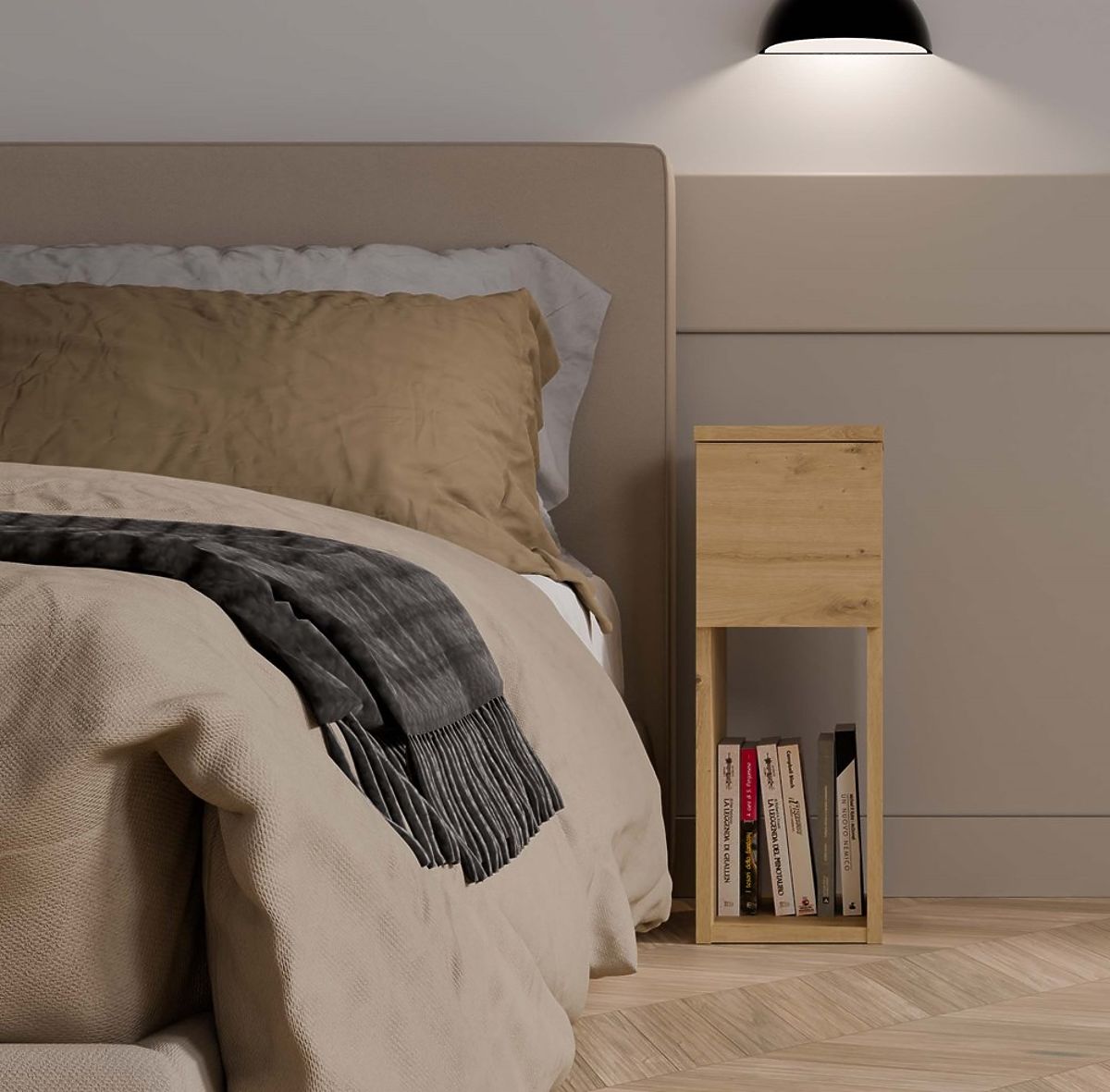 Der Nachttisch GALAX 20 1S ist eine praktische und ästhetische Ergänzung für jedes Schlafzimmer. Ausgestattet mit einem offenen Regal und einer Schublade, eignet er sich hervorragend als Platz für Buch, Telefon, Ladegerät oder andere Gegenstände, die Sie immer griffbereit haben möchten.