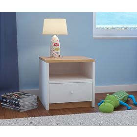 Das schöne Nachtschränkchen für Kinder mit Buche-Dekor eignet sich für alle Kinderzimmer. Es wurde aus hochwertiger Laminat-Platte hergestellt. Das Schränkchen pass perfekt zu dem Bett Ourbaby, und beim Kauf beider Produkte bekommen Sie ein schönes einheitliches Design. Der Nachttisch hat ein Regal und eine Schublade.