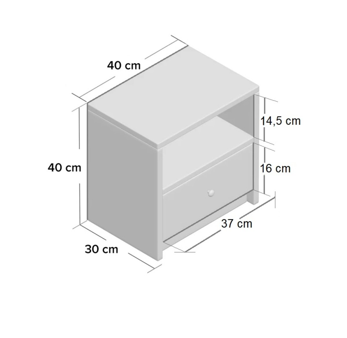 Das schöne Nachtschränkchen für Kinder in Weiß eignet sich für alle Kinderzimmer. Es wurde aus hochwertiger Laminat-Platte hergestellt. Das Schränkchen pass perfekt zu dem Bett Ourbaby, und beim Kauf beider Produkte bekommen Sie ein schönes einheitliches Design. Der Nachttisch hat ein Regal und eine Schublade.
