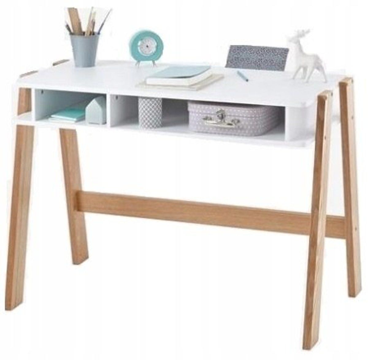 Dieses moderne Möbelstück in einer Kombination aus Holz und weißen Farben passt gut zu jedem Interieur.