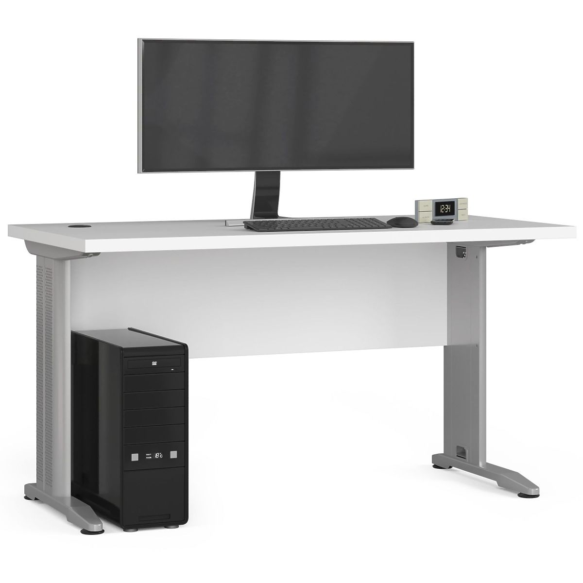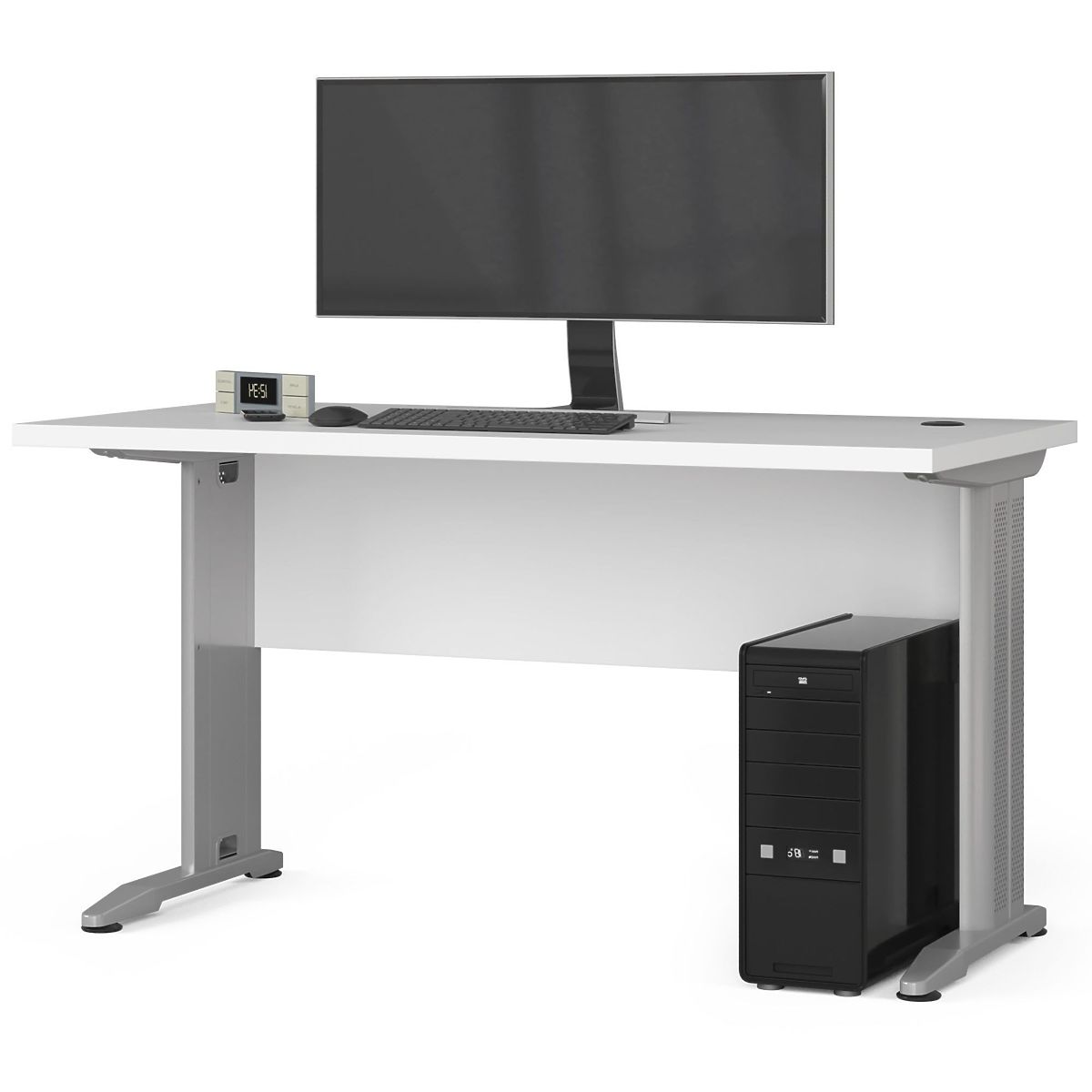 Freistehender Computertisch BM-135 mit Metallbeinen und weißer Oberfläche. .. mehr