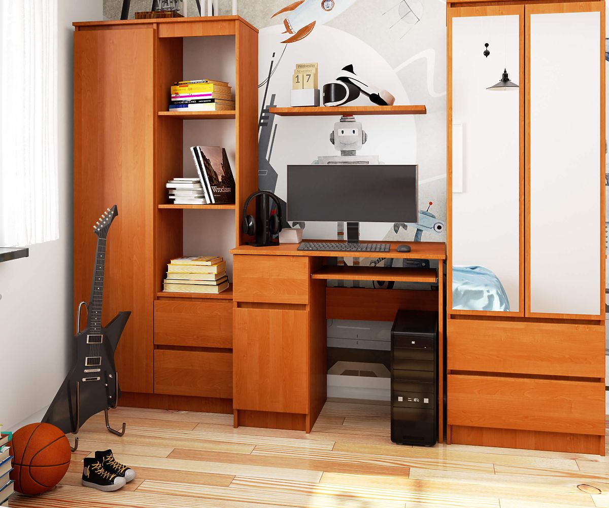 Der Tisch Piksel ist ein kleiner Tisch mit viel Platz für die wichtigsten Schulsachen. Dank der Türen bietet er Platz für viele Hefte und Bücher. Der Tisch ist 90 cm lang und eignet sich hervorragend für kleine und mittlere Räume.