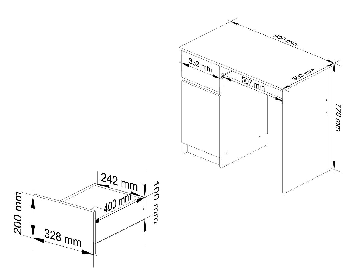 Der Tisch Piksel ist ein kleiner Tisch mit viel Platz für die wichtigsten Schulsachen. Dank der Türen bietet er Platz für viele Hefte und Bücher. Der Tisch ist 90 cm lang und eignet sich hervorragend für kleine und mittlere Räume.