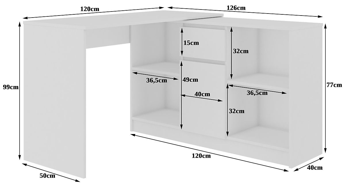 Wir sind ein Online-Shop, der qualitativ hochwertige Büromöbel anbietet, die sich durch Langlebigkeit und universellen Charakter auszeichnen. Auch unsere Preise sind bemerkenswert. Der Schreibtisch mit Kommode besteht aus einer 16 Millimeter dicken laminierten Platte. Diese Platte zeichnet sich durch gute Abriebfestigkeit aus. Die Möbel bestehen unter anderem aus praktischen Regalen, die alle Ordner leicht aufnehmen können, und Schubladen auf Metallkugellaufschienen. Die Kanten sind mit einer ABS-Kante versehen, die eine hohe Widerstandsfähigkeit gegen Beschädigungen gewährleistet.