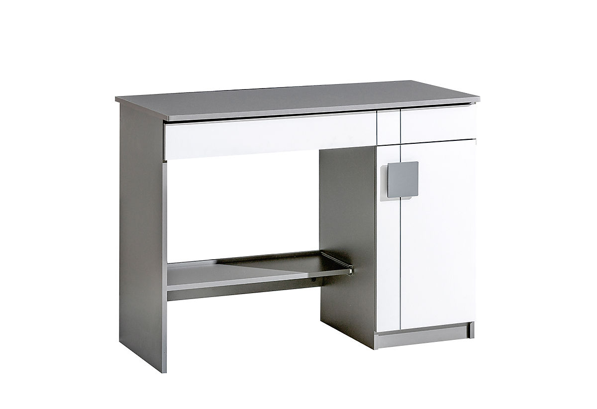 Der praktische Schreibtisch GUMI ist ein stilvoller Schreibtisch für die ersten Hausaufgaben und passt perfekt in jedes Kinderziemmer! Der Schreibtisch ist aus Laminat hergestellt. Die Farbkombination aus Weiß und Anthrazit/grau sieht sehr modern aus. Unter der Tischplatte befindet sich eine längliche Schublade.