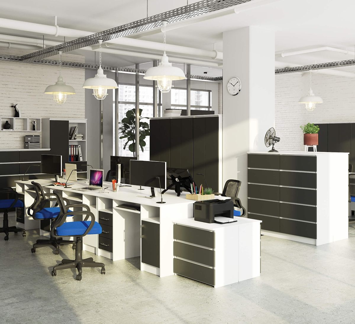 Computertisch ANA 124 cm in Weiß und Graphitgrau mit viel Stauraum. .. mehr