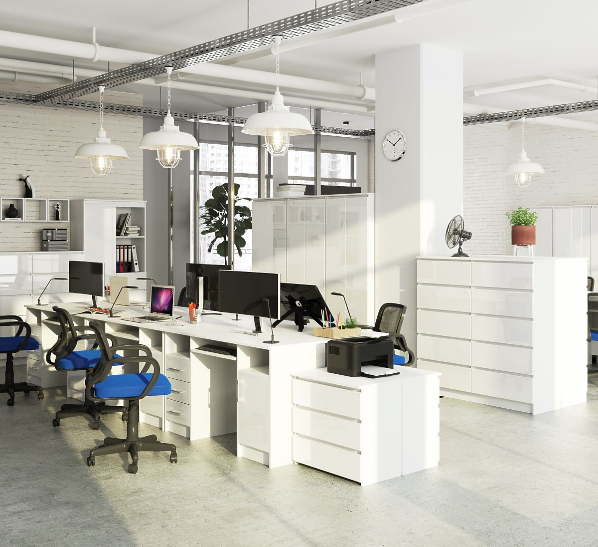 Eleganter weißer Schreibtisch mit viel Stauraum und Hochglanzfronten. .. mehr
