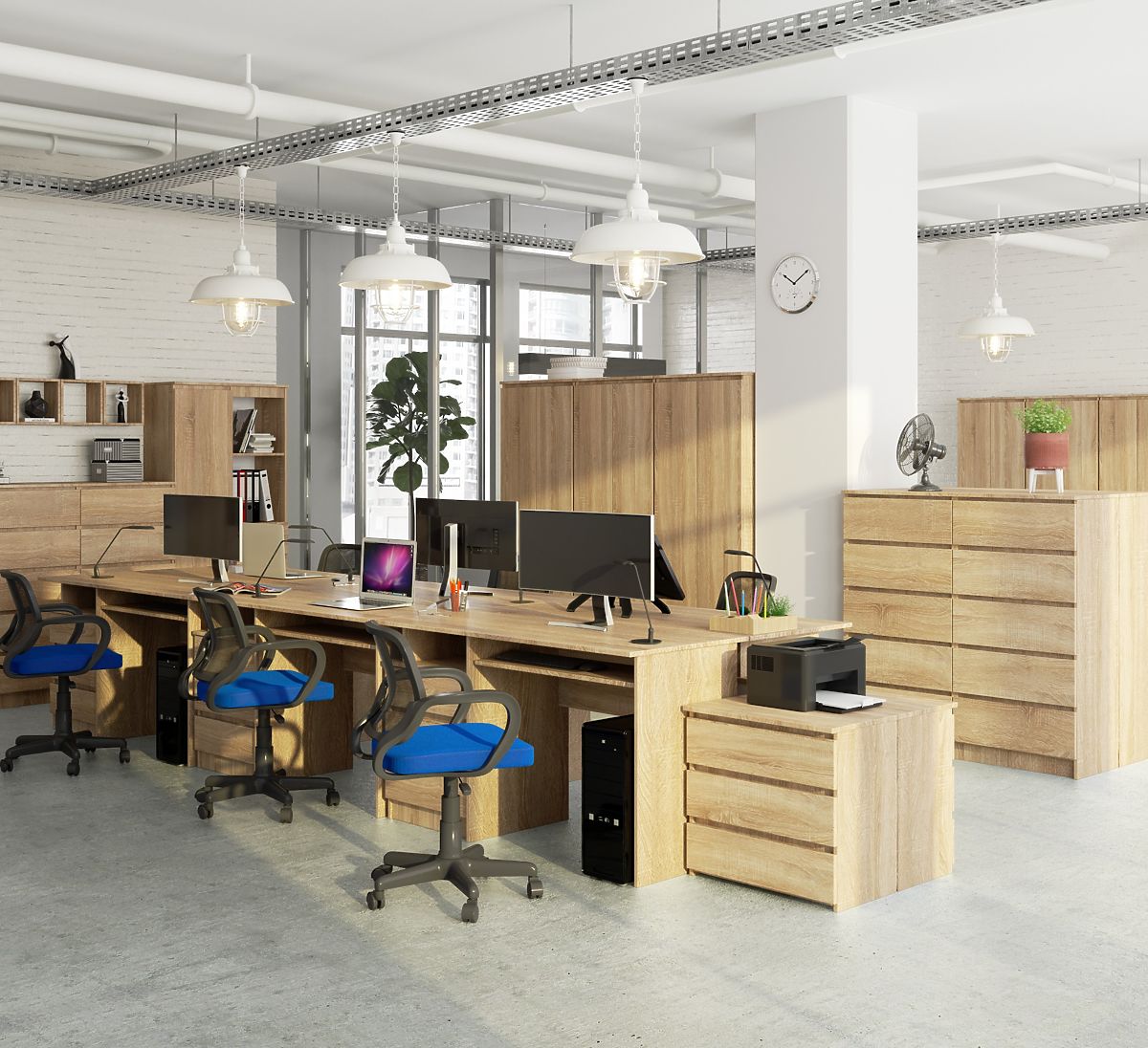 Sonoma Eiche ist eine Farbe, die sich seit langem großer Beliebtheit erfreut. Sie passt hervorragend in jedes Interieur, lässt sich gut mit Accessoires in verschiedenen Farben kombinieren und ist leicht zu reinigen. Besonders erwähnenswert ist der Schreibtisch, der in diesem universellen Farbton entworfen wurde. Das Produkt wurde mit Blick auf die Einrichtung von Büros, Studentenzimmern oder Heimarbeitsplätzen - jedem Raum, in dem sich ein Computer befindet - geschaffen. Der freistehende Schreibtisch CLP in heller Farbe wird sicherlich durch seine hohe Qualität und außergewöhnlich sorgfältige Verarbeitung angenehm überraschen. Das Produkt zeichnet sich durch eine stabile Konstruktion aus, die es sehr langlebig macht. Die Schubladen, mit denen das Möbelstück ausgestattet ist, sind geräumig und bieten Platz für viele bei der Computerarbeit notwendige Büromaterialien. Die Abmessungen des Möbels betragen 135 cm x 77 cm x 60 cm.