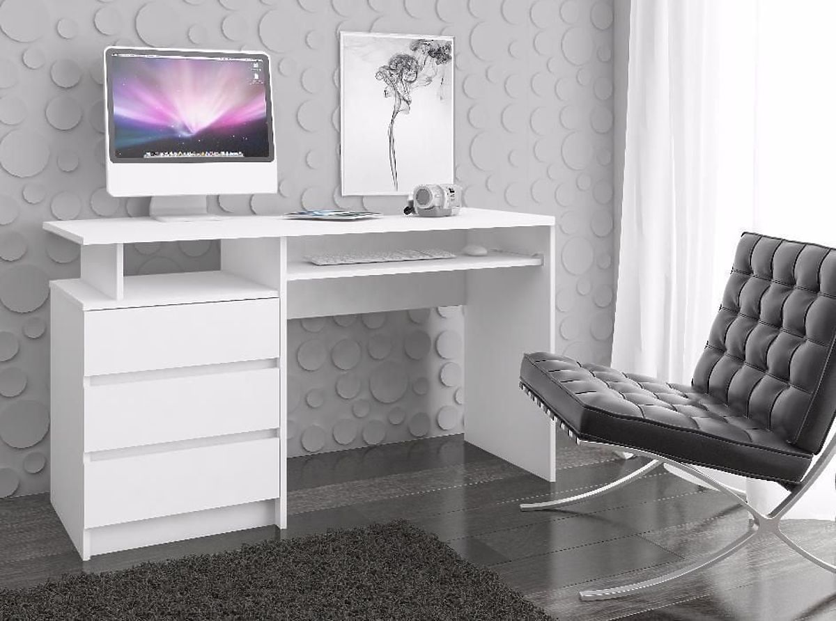 Der weiße freistehende Tisch ist ein modern gestaltetes Möbelstück, das perfekt zu den aktuellen Einrichtungstrends passt. Er besticht durch seine Einfachheit und Eleganz in modischem Weiß. Der Tisch verfügt über drei geräumige Schubladen, ein offenes Regal, eine ausziehbare Tastaturablage und eine breite (135 Zentimeter) Platte. Der freistehende Tisch CLP eignet sich sowohl für das Büro als auch für das Homeoffice. Dieses Angebot wird sicherlich die Erwartungen derjenigen erfüllen, für die die Arbeitsfläche am wichtigsten ist. Ihre Tiefe beträgt bis zu 60 Zentimeter, was eine komfortable Nutzung von Computer und anderen Büromaterialien ermöglicht. Das Produkt ist auch als Gaming-Tisch beliebt, bei dem der Raum und der Komfort des Benutzers während langer Spielzeiten sehr wichtig sind.