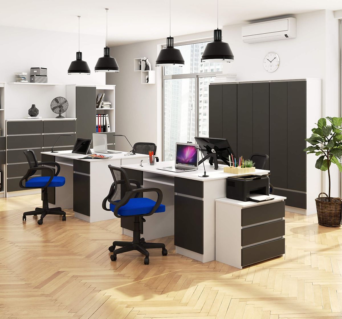 Banaby.de » Kindermöbel / Kindertische / Kinderschreibtische / SCHREIBTISCH CLP A5 2D 2SZ PK WEISS / GRAU