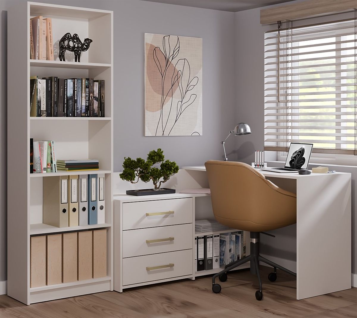 Der Eckschreibtisch mit 3 Schubladen ist eine funktionale Lösung für Personen, die viel Platz zum Arbeiten und eine bequeme Anordnung der wichtigsten Arbeitswerkzeuge benötigen.