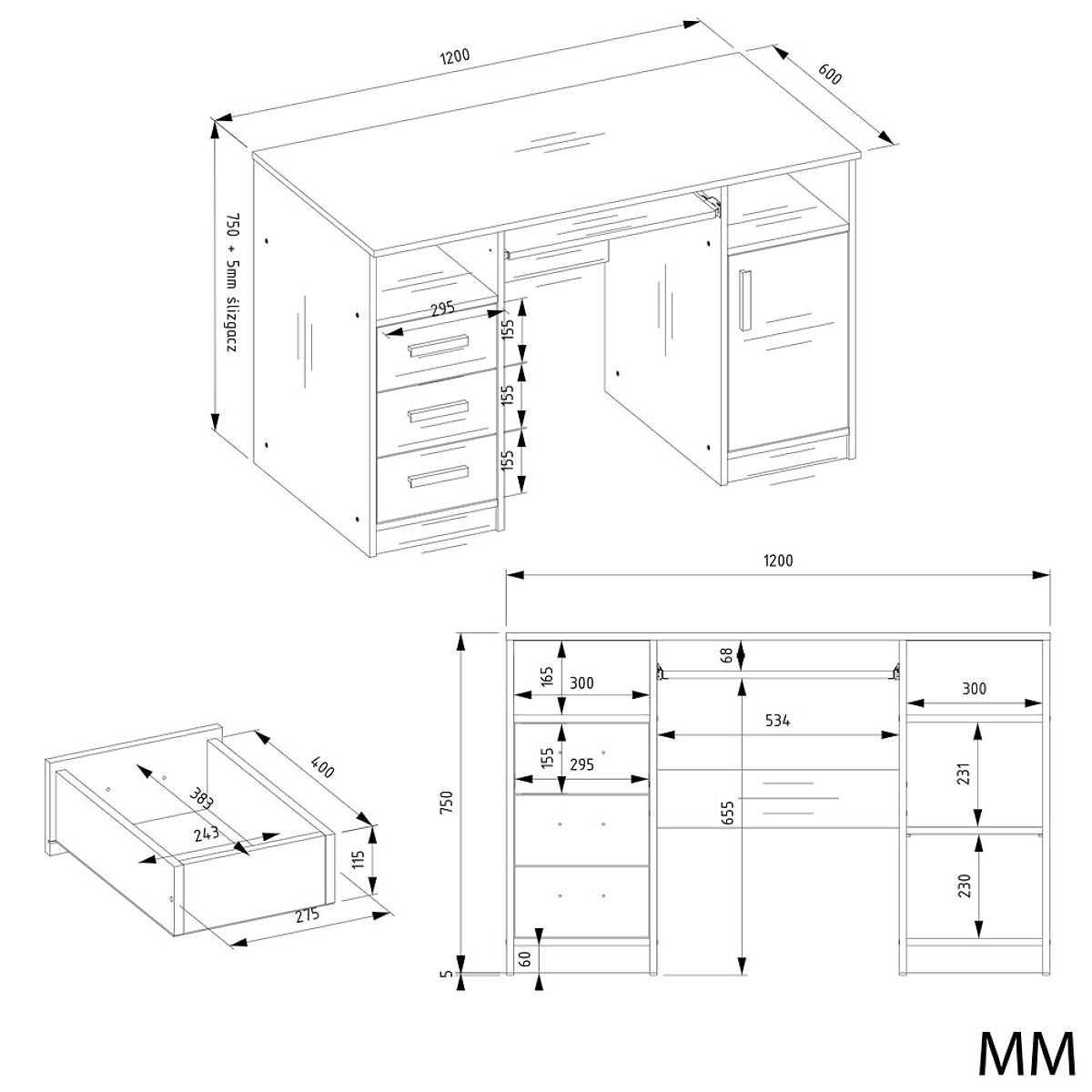 Ausgestattet mit 3 Schubladen und einem verschließbaren Schrank mit 1 Tür und 2 Regalen bietet er ausreichend Stauraum für Dokumente, Bücher oder Büromaterialien. Zusätzlich steht unter der Tischplatte eine ausziehbare Tastaturablage zur Verfügung, die die Nutzung des Computers erleichtert.
