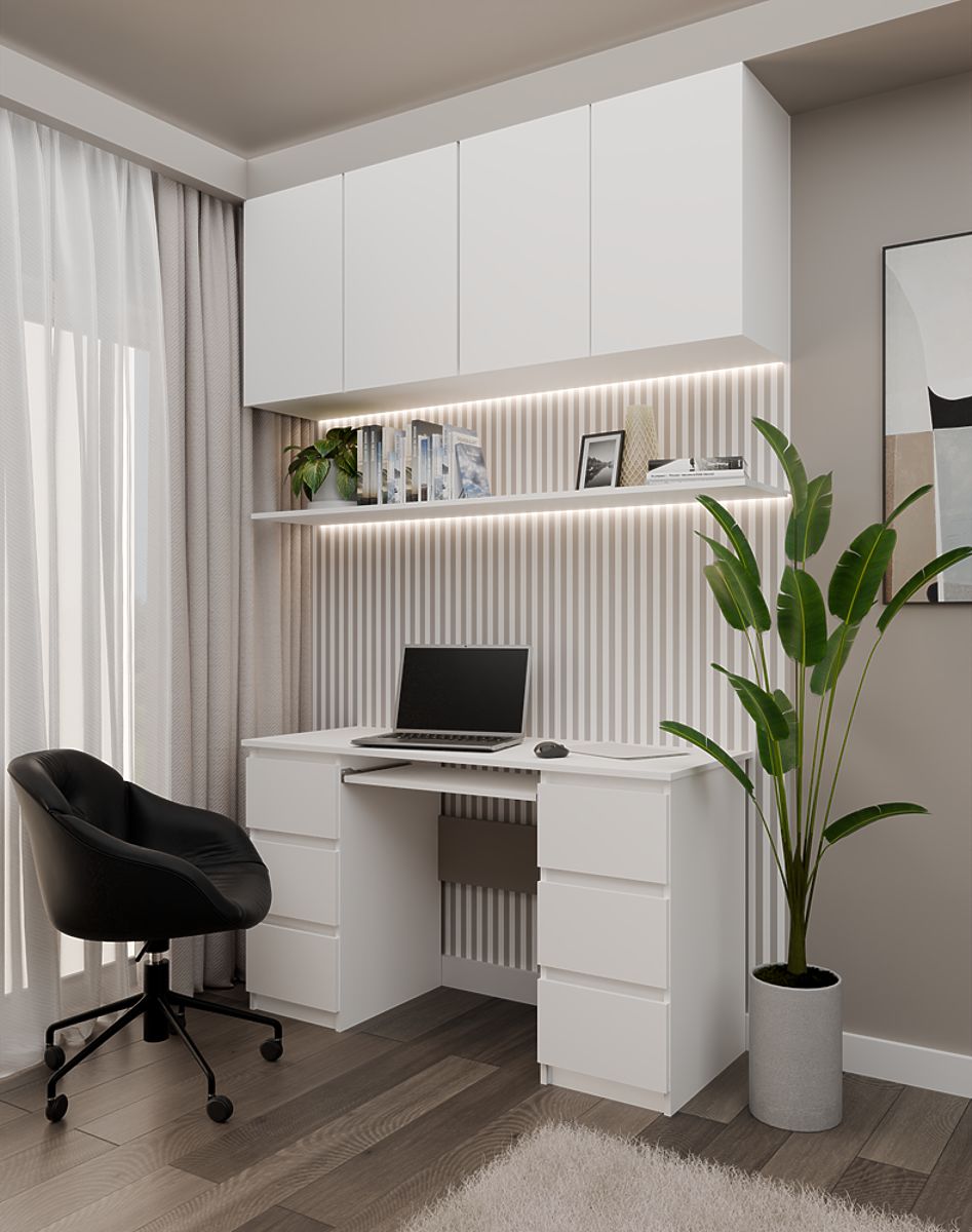 Möchten Sie Ihren Arbeitsbereich anpassen? Zum Schreibtisch KUBA können Sie einen passenden Aufsatz hinzufügen (separat erhältlich), der das Modell mit einer Breite von 130 cm perfekt ergänzt und die Funktionalität des gesamten Sets erhöht.