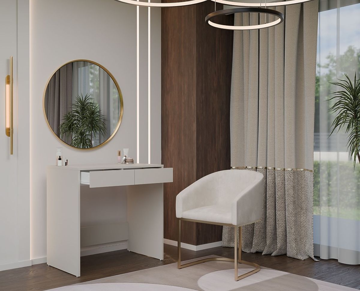 Weitere Möglichkeiten:Im Angebot ist der Schreibtisch zusammen mit einem Spiegel und LED-Beleuchtung (kompletter Schminktisch) erhältlich.