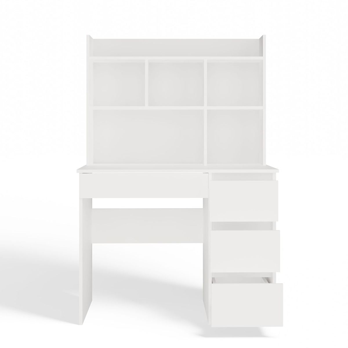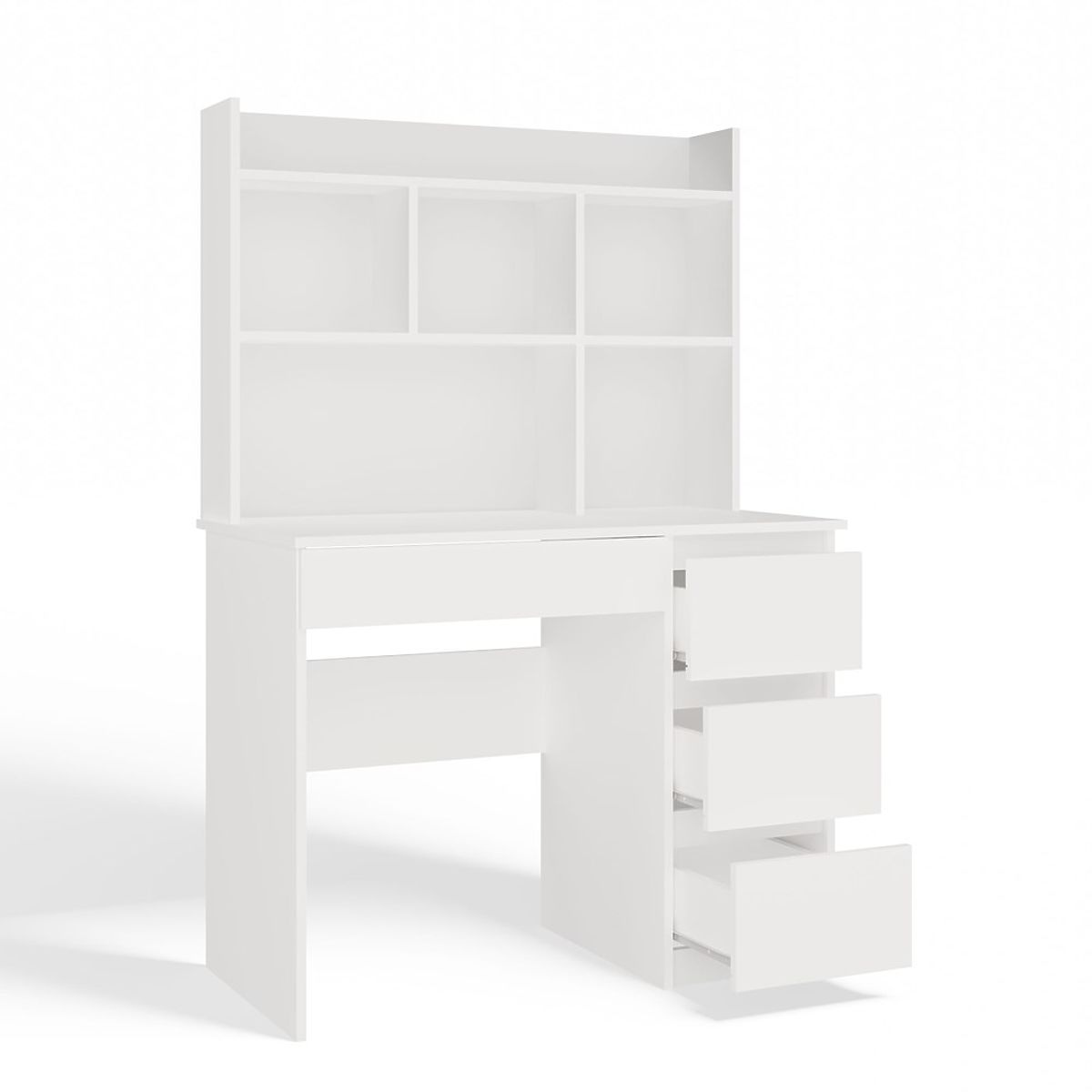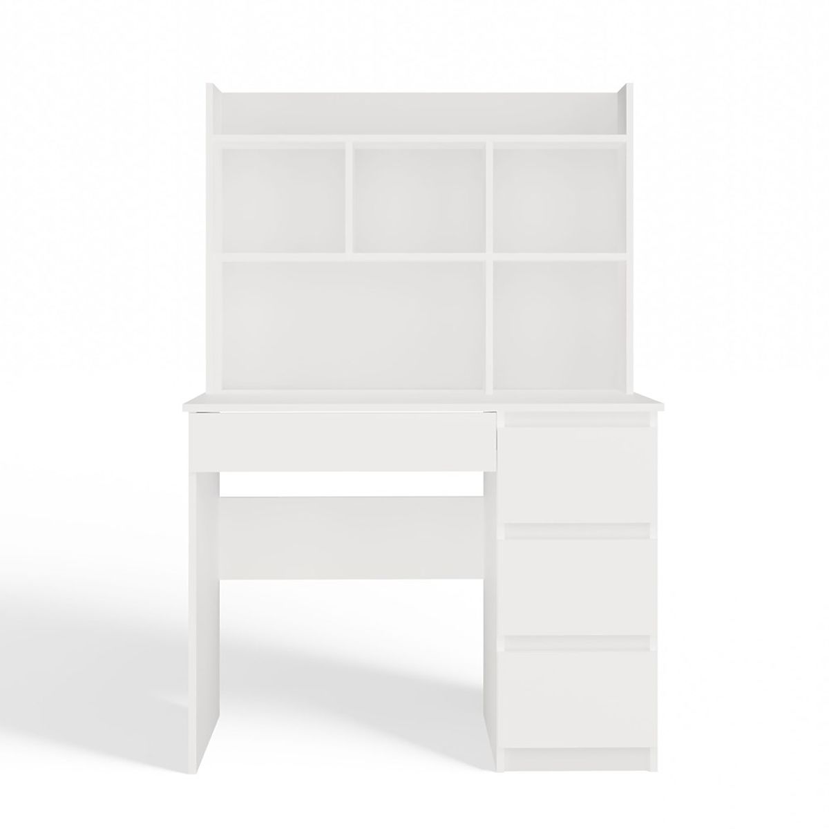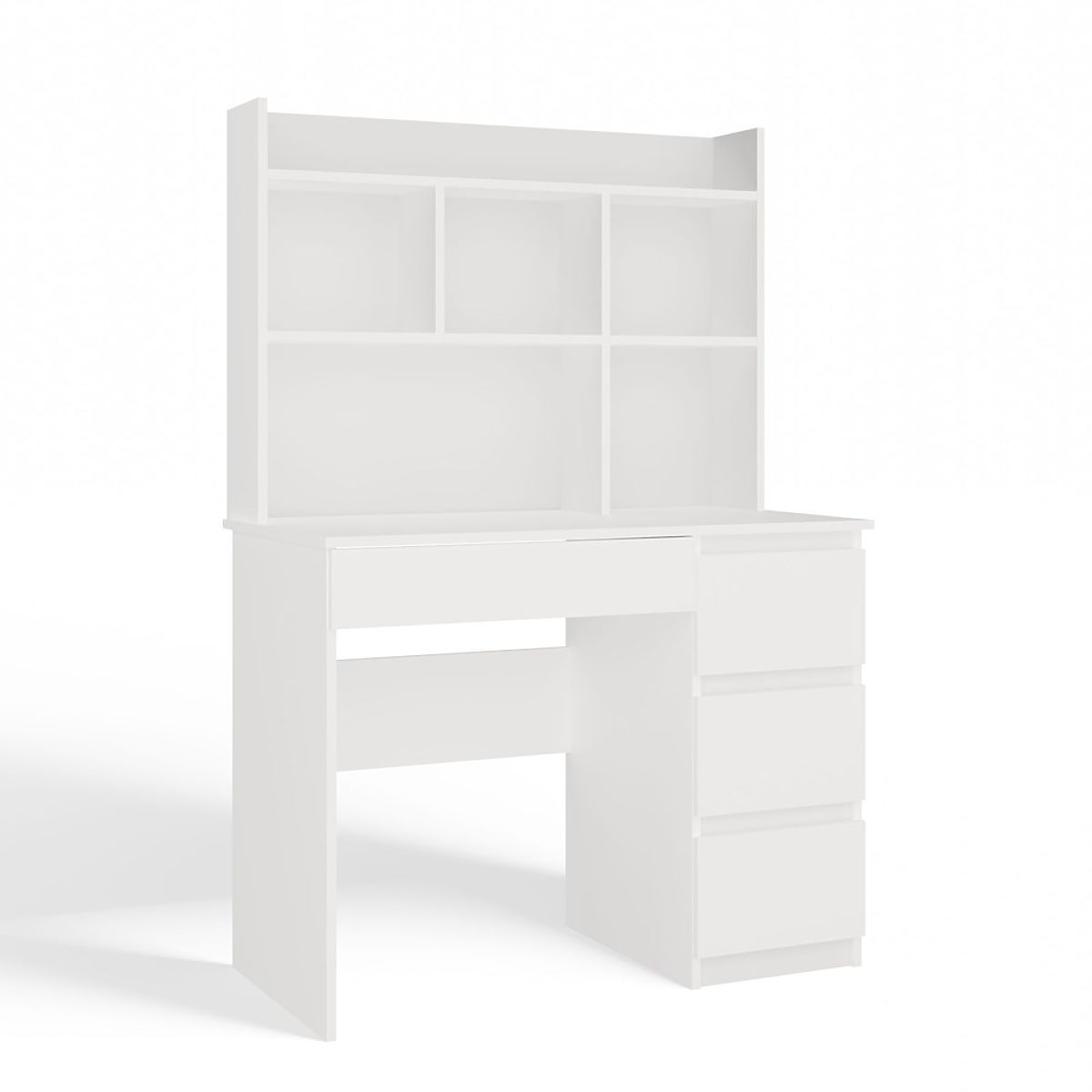 Banaby.de   »   Kindermöbel   /   Kindertische   /   Kinderschreibtische   /   Schreibtisch MIJAS Rechts mit Aufsatz Mattweiß 4 Schubladen 4 Regale für Büro und Zimmer