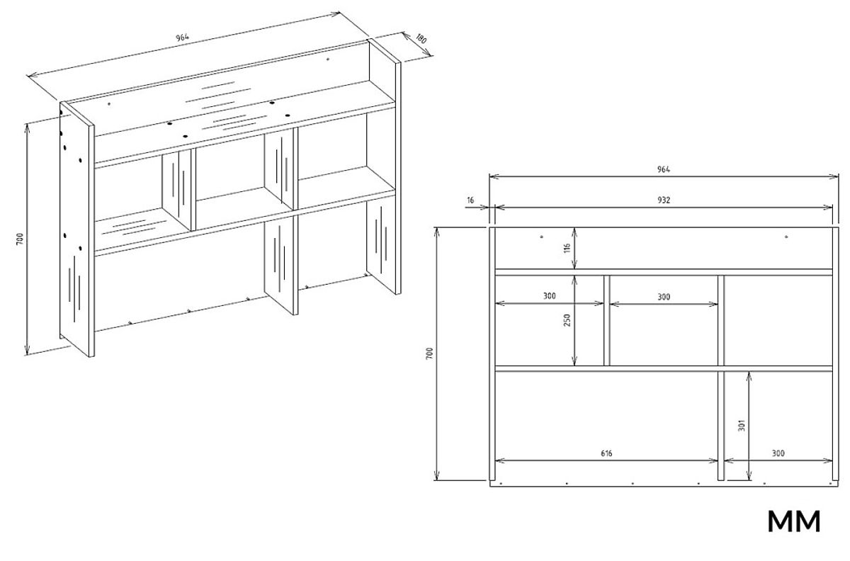 • Aufsatz mit offenen Regalen – ideal für Bücher, Hefte, Dekorationen oder Zubehör
