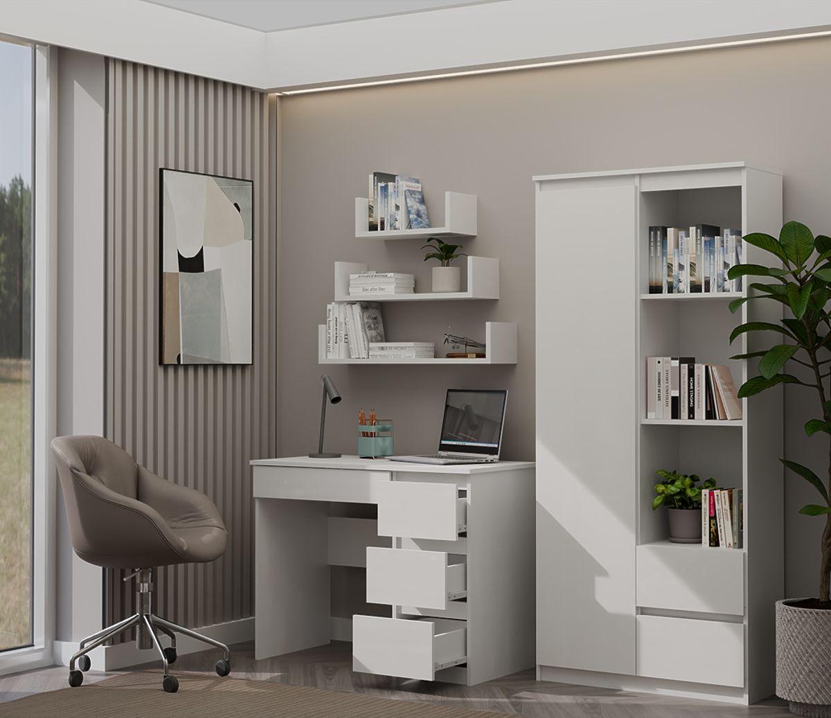 FUNKTIONALER SCHREIBTISCH MIT 4 SCHUBLADEN