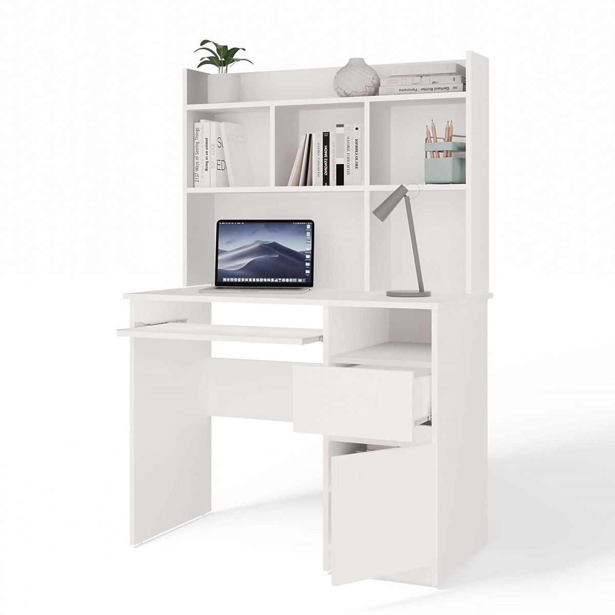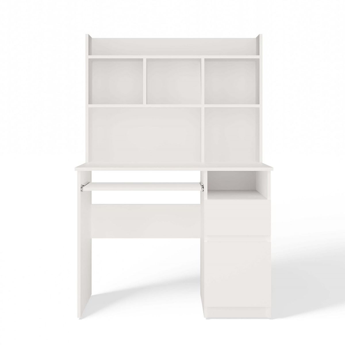 Schreibtisch PORTO Rechts mit Aufsatz Weiß Matt Schublade Regal für Büro Zimmer