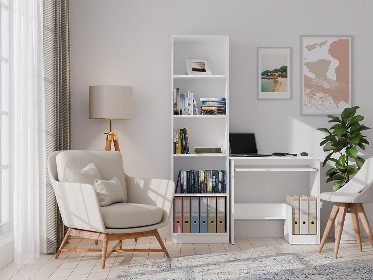 Der Schreibtisch ROSA ist ein kompaktes und zugleich sehr funktionales Möbelstück, das sich hervorragend für kleine Räume eignet - sowohl für Kinder- und Jugendzimmer als auch für das Homeoffice. Dank des minimalistischen Designs und der matten weißen Farbe passt der Tisch ideal in moderne Innenräume und vergrößert optisch den Raum.