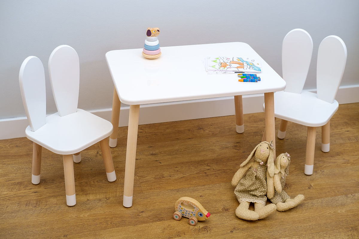 Banaby.de » Kindermöbel / Kindertische / Kindertische und Stühle / Kindertisch mit Stühlen - Öhrchen - weiß