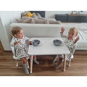 Ein wunderschönes Holzset aus Tisch und Stühlen in Form von Öhrchen, das Ihre Kinder garantiert lieben werden. Dieses originelle Set schafft eine gemütliche Ecke zum Malen, Lesen oder für einen Snack.