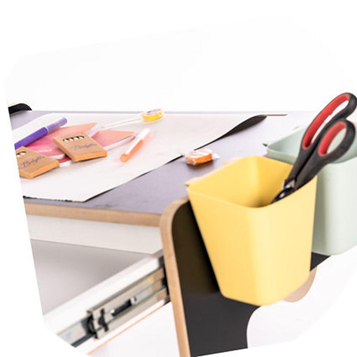 Ermöglichen Sie Ihrem Kind zu spielen, zu gestalten, zu lernen und zu entspannen in einer eigenen praktischen und komfortablen Umgebung. Diese Möbel bieten eine stabile und robuste Konstruktion, ein modernes Design und eine strapazierfähige Oberfläche, die leicht zu reinigen ist. Dank der praktischen Schublade, des Halterung für Zeichenpapier und der hängenden Becher sind alle Spielzeuge und Utensilien immer griffbereit. Die schwarze Farbe verleiht dem Raum ein elegantes und anspruchsvolles Aussehen, das in jedes Interieur passt, und die Möbel bleiben auch über die Jahre hinweg attraktiv, während das Kind wächst.