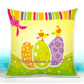 Kissen mit Ostern Motive sind schön, bunt und modern, nur auf einer Seite gedruckt. Rückseite des Kissens ist weiß.