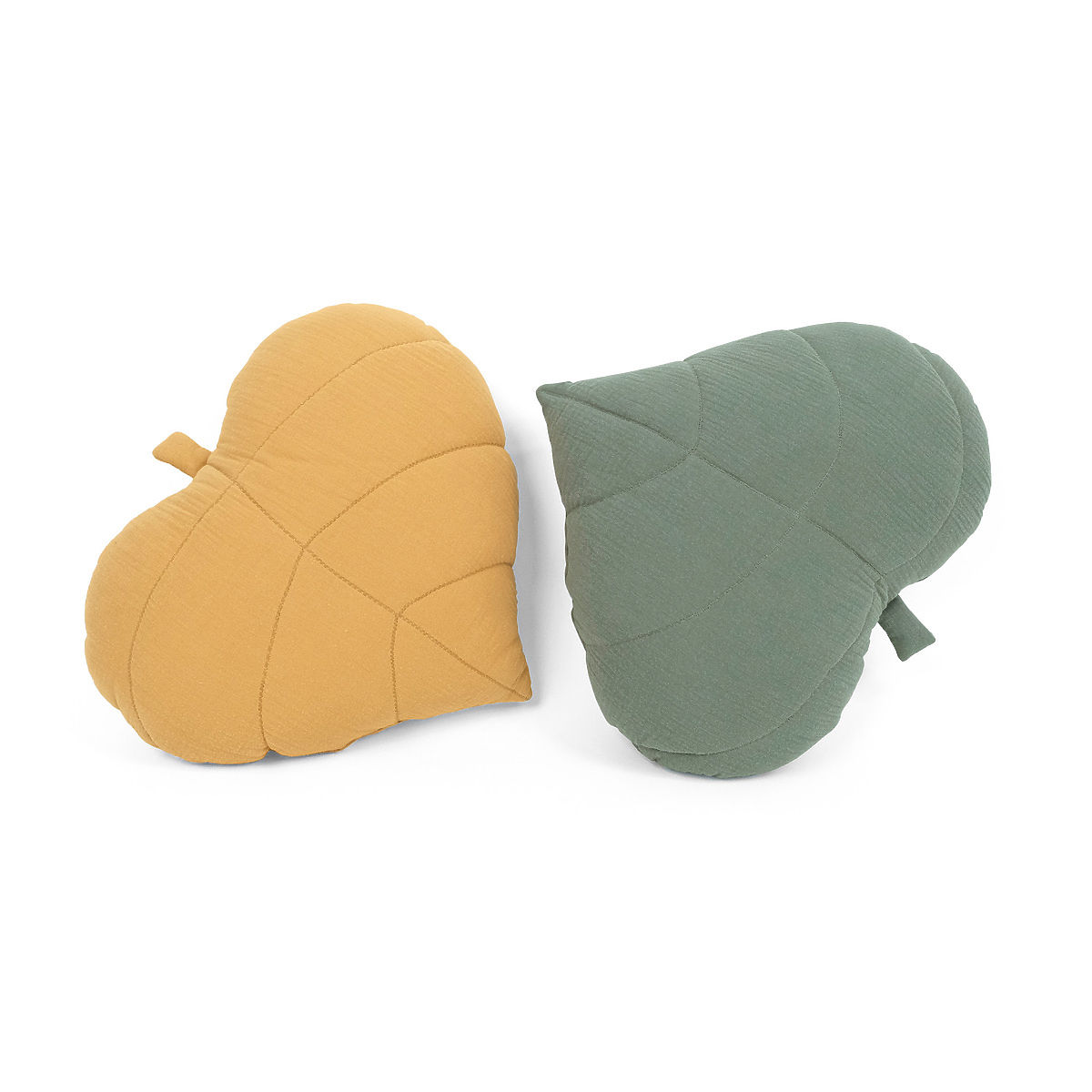 Schaffen Sie eine natürliche Atmosphäre im Kinderzimmer mit diesem schönen Musselin-Kissen in Blattform. Das einzigartige Stück in grüner Ausführung ist aus weichem und atmungsaktivem Musselin mit antiallergischer Füllung gefertigt und ideal für die empfindliche Haut des Babys.
