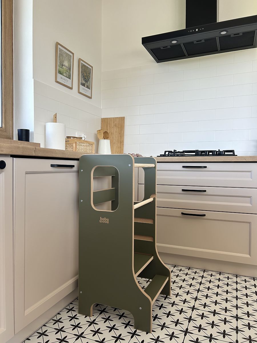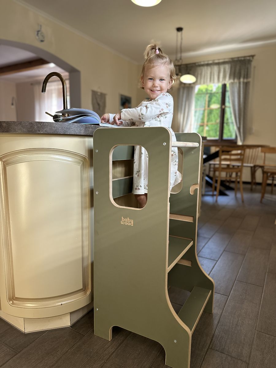 Der zeitlose Lernturm SLIM in einer ungewöhnlichen olivgrünen Farbe begeistert alle Eltern, die ihre Kinder aktiv in alltägliche Aktivitäten einbeziehen und ihnen ermöglichen möchten, die Welt um sich herum zu entdecken. Die Verwendung dieses Lernturms fördert die Kreativität, Selbstständigkeit und Motorik der Kinder und trägt somit zur Persönlichkeitsentwicklung und Sozialisation bei. Beziehen Sie Ihre kleinen Helfer in die täglichen Hausarbeiten ein und genießen Sie viele lustige und unvergessliche Momente mit ihnen.