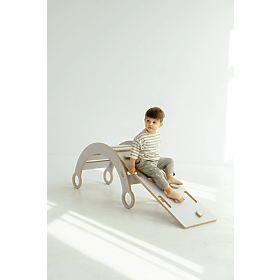 Banaby.de » Montessori / Montessori Schaukeln / Holz-Montessori-Schaukel mit Rutsche/Kletterwand M - weiß