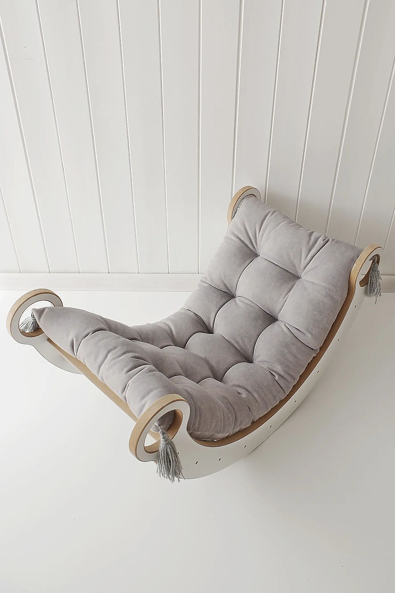 Multifunktionale weiße Holzschaukel für Kinderzimmer. .. mehr