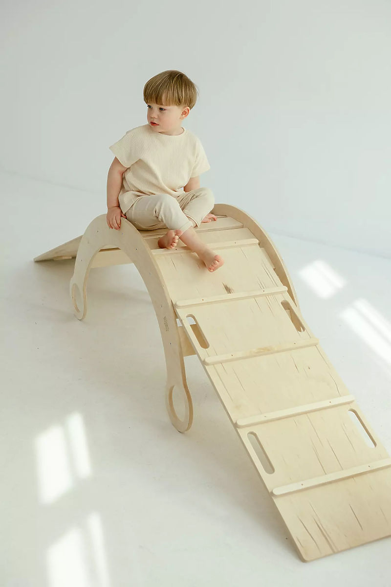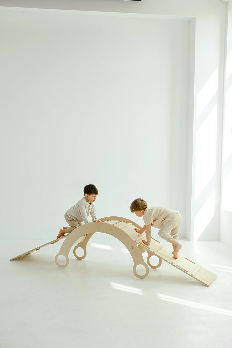 Kletterset Montessori L in natürlicher Ausführung ist eine großartige Ergänzung für das Kinderzimmer oder Spielzimmer, wo Raum für Bewegung, Spiel und die Entwicklung der kindlichen Fantasie entsteht. Die Kombination aus Holzschaukel und Kletterelementen schafft einen Indoor-Spielplatz, der Kinder dazu motiviert, aktiv Zeit zu verbringen und neue Spielmöglichkeiten zu entdecken.